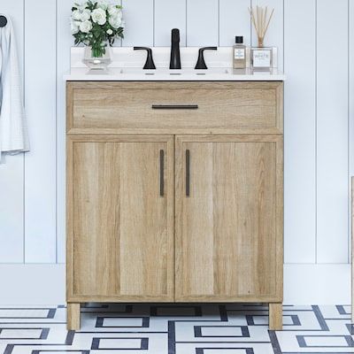 Bathroom Vanity Light Natural Oak 30" Single Sink Style Selections with White Engineered Stone Top