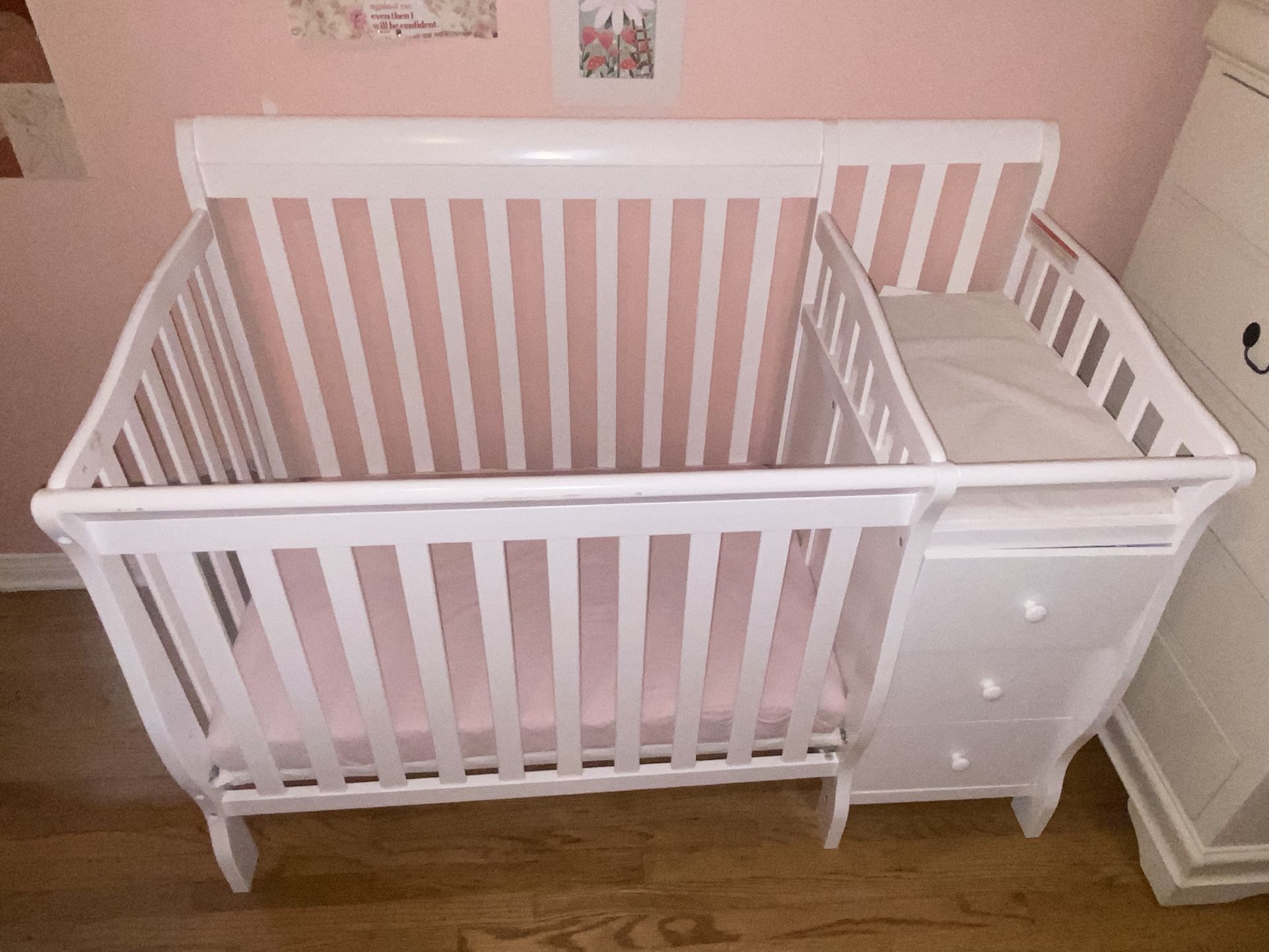 NEED GONE ASAP Basically new, only a few scratches from it not fitting through our doorways properly! Moving so must go! Mattress included! Price negotiable