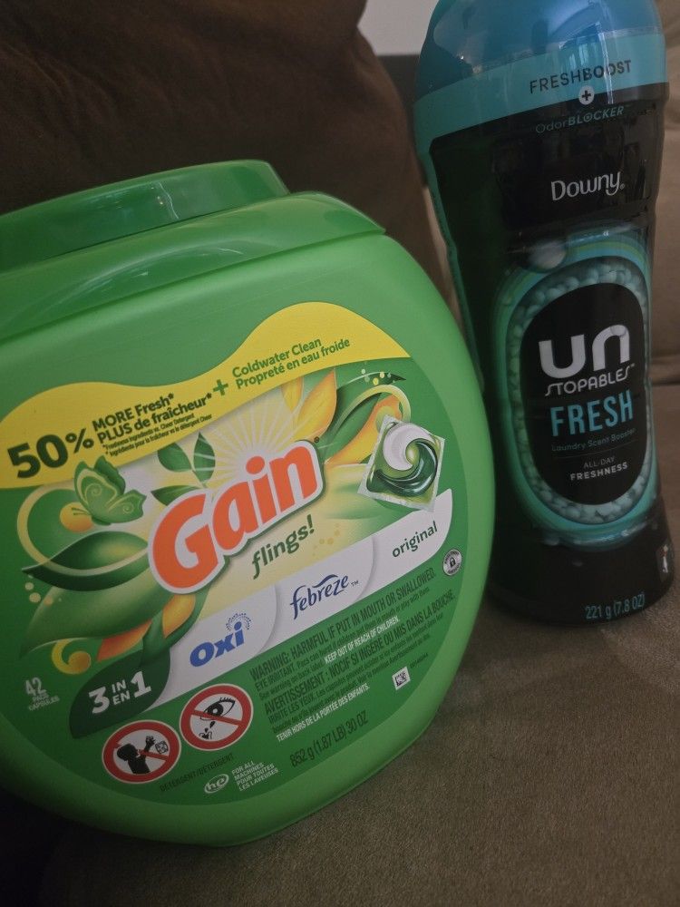 42 count gain flings $10 7.8 oz downy unstoppable $4 Both for $13 altogether