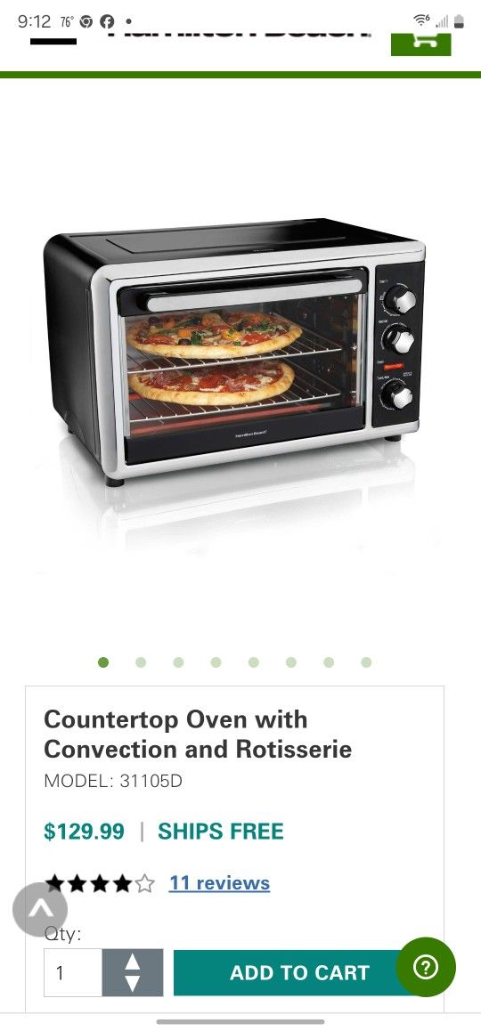 Hamilton Beach Roaster ,Large Capacity, Fits Two 12" Pizzas.