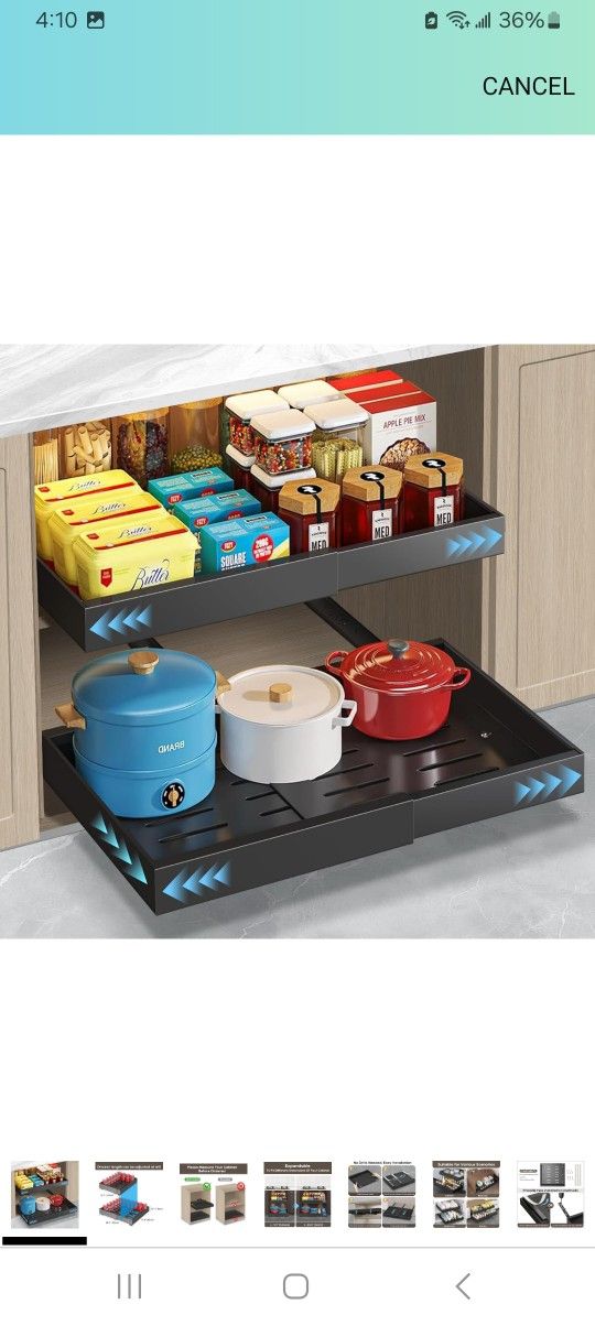 Expandable Pull Out Cabinet Organizer 16.5" Deep, 3 Rails Slide Out Drawer for Kitchen Cabinet, Adjustable No Drill Roll Out Shelf Adhesive with Nano Film 12.2"-20.5" W Black 1 Pack New in box Retails $24