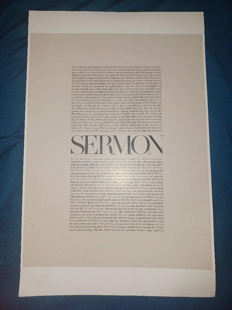Sermon On the Mount print:(3 prints in set) $7.00 David and Goliath print $5.00 The Woman With the Issue of Blood print $5.00 *** Please note this is Not my art work, I just purchased multiple prints