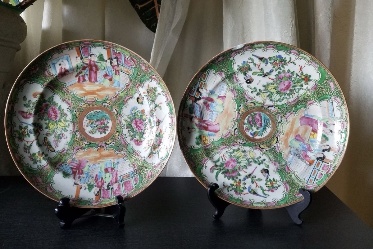 Lot of Two Antique Chinese Plates Decorated with People and Flowers