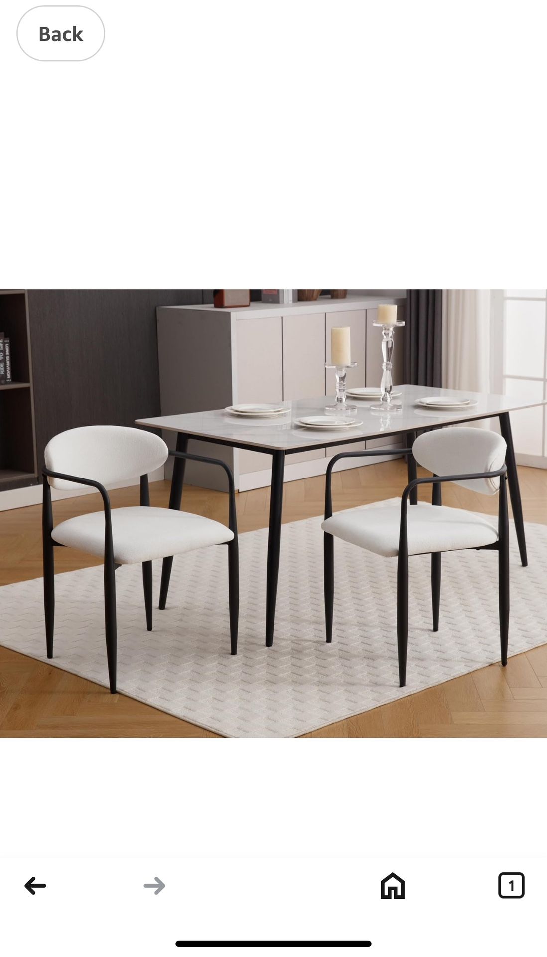 New in box EALSON Modern Dining Chairs with Arms Set of 2 Upholstered Fabric Kitchen & Dining Room Chairs Comfortable Chenille Padded Armchairs with Sturdy Metal Legs Side Chairs for Living Room, White , 2AWH-101