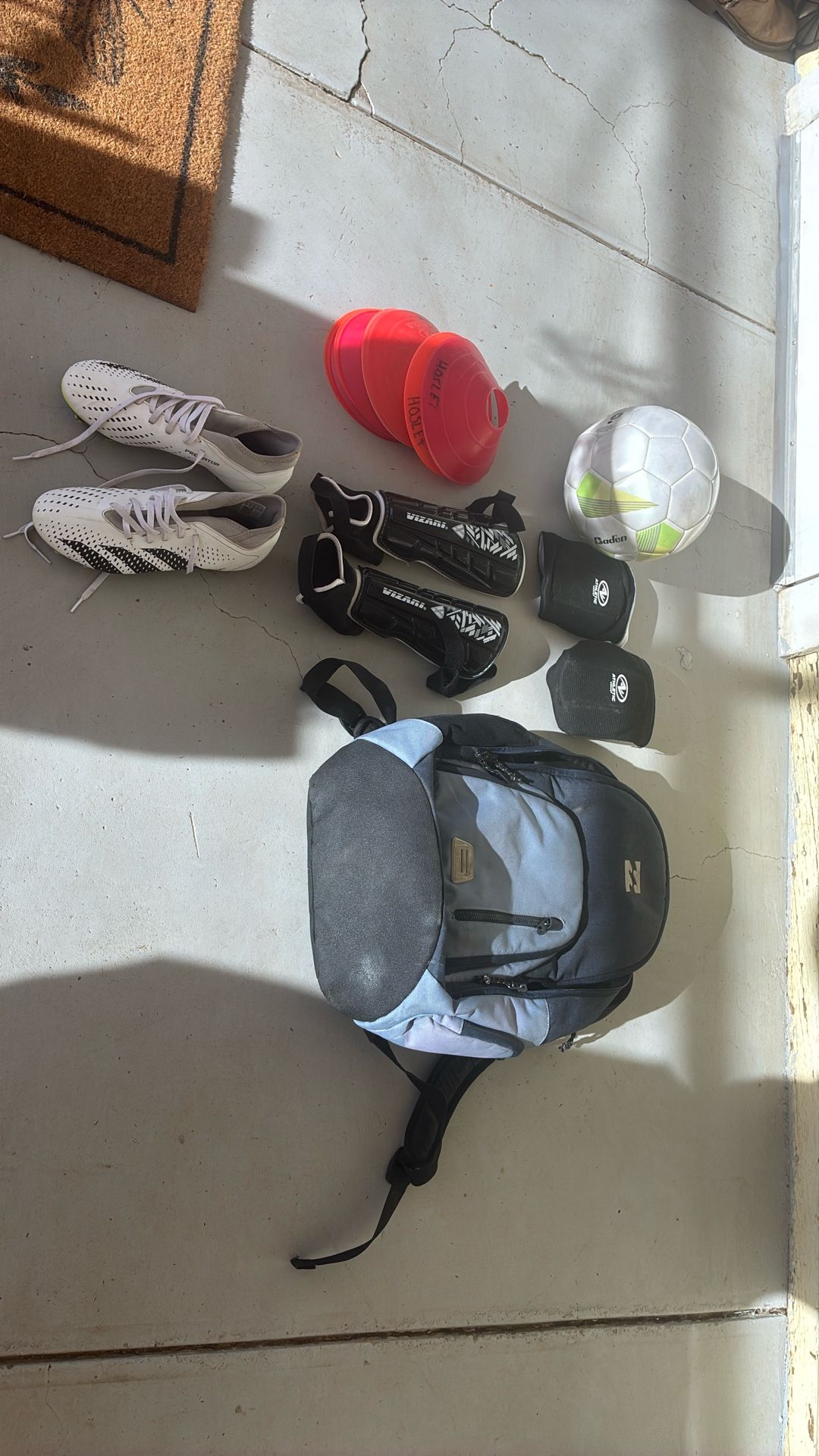 Cones, soccer ball, knee pads, shin covers, backpack and shoes included Shoes size : 7.5
