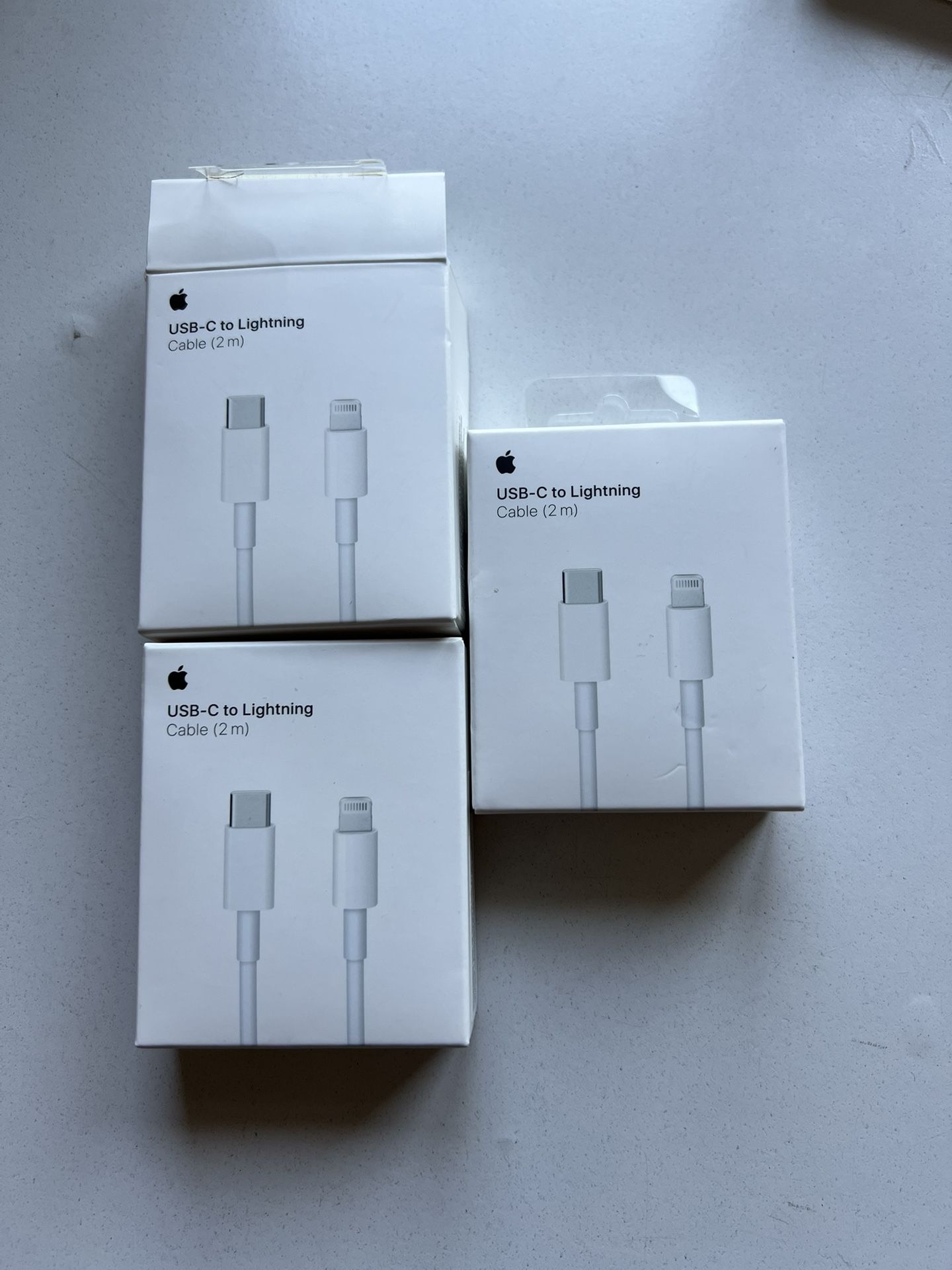 I have 3 Apple USB-C to Lightning charging cables. $12 each or all 3 for $30. All are brand new - two have sealed boxes. One has open box, but never used.
