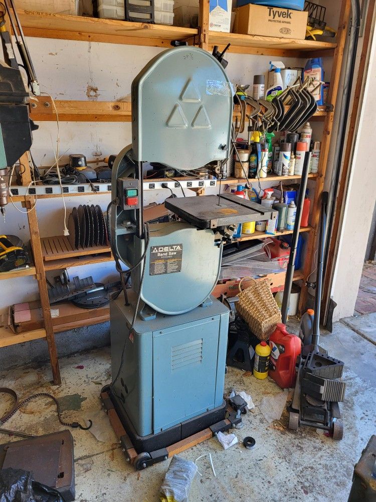 Delta band Saw With stand and casters and extra blades.