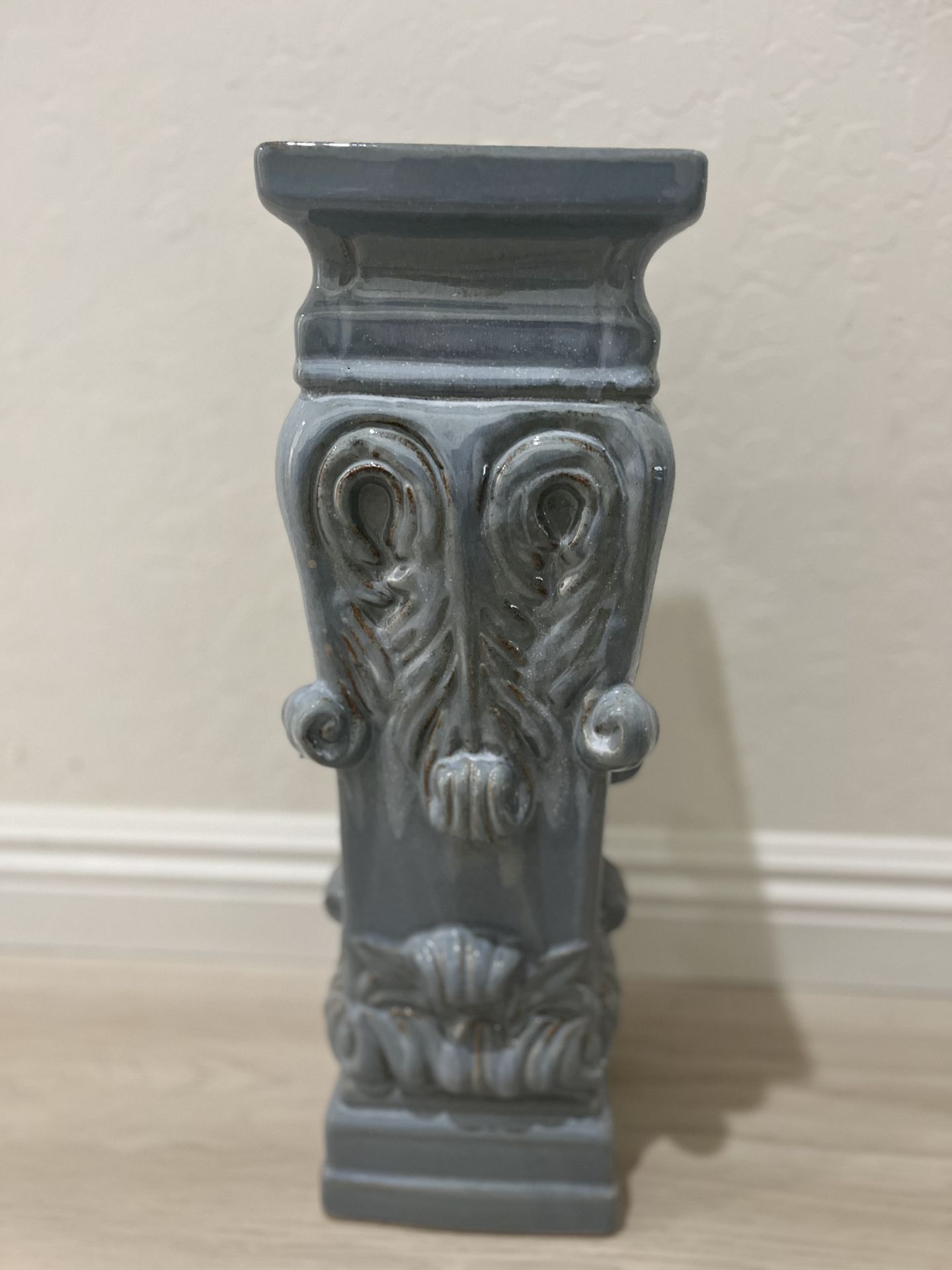 Grey pedestal for candle or a plant etc. 18” tall x 6” wide
