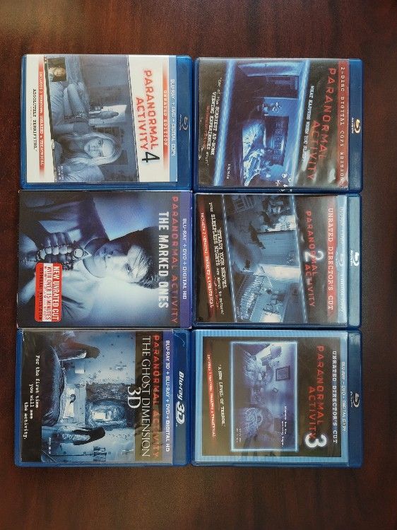 All 6 movies on Blu-ray format. 5 includes slip cover and 6 is the 3-D version. Feel free to ask any questions.