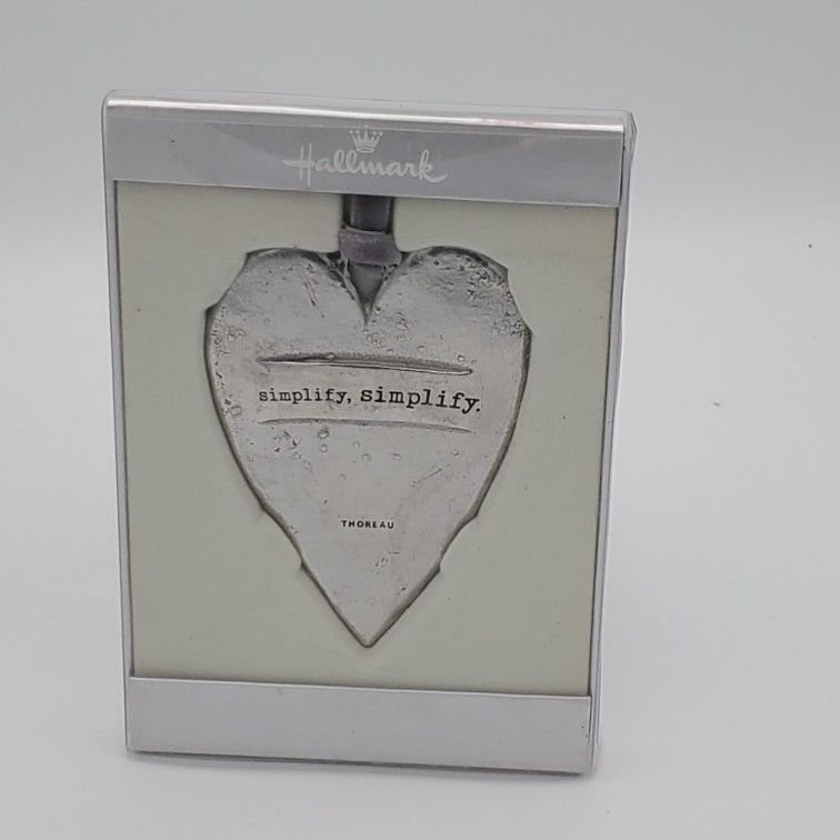 NEW in original package Hallmark pewter heart with the quote "Simplify.Simplify." by Henry David Thoreau. NEVER opened or used. Add it to your Hallmark collection or give it as a gift.