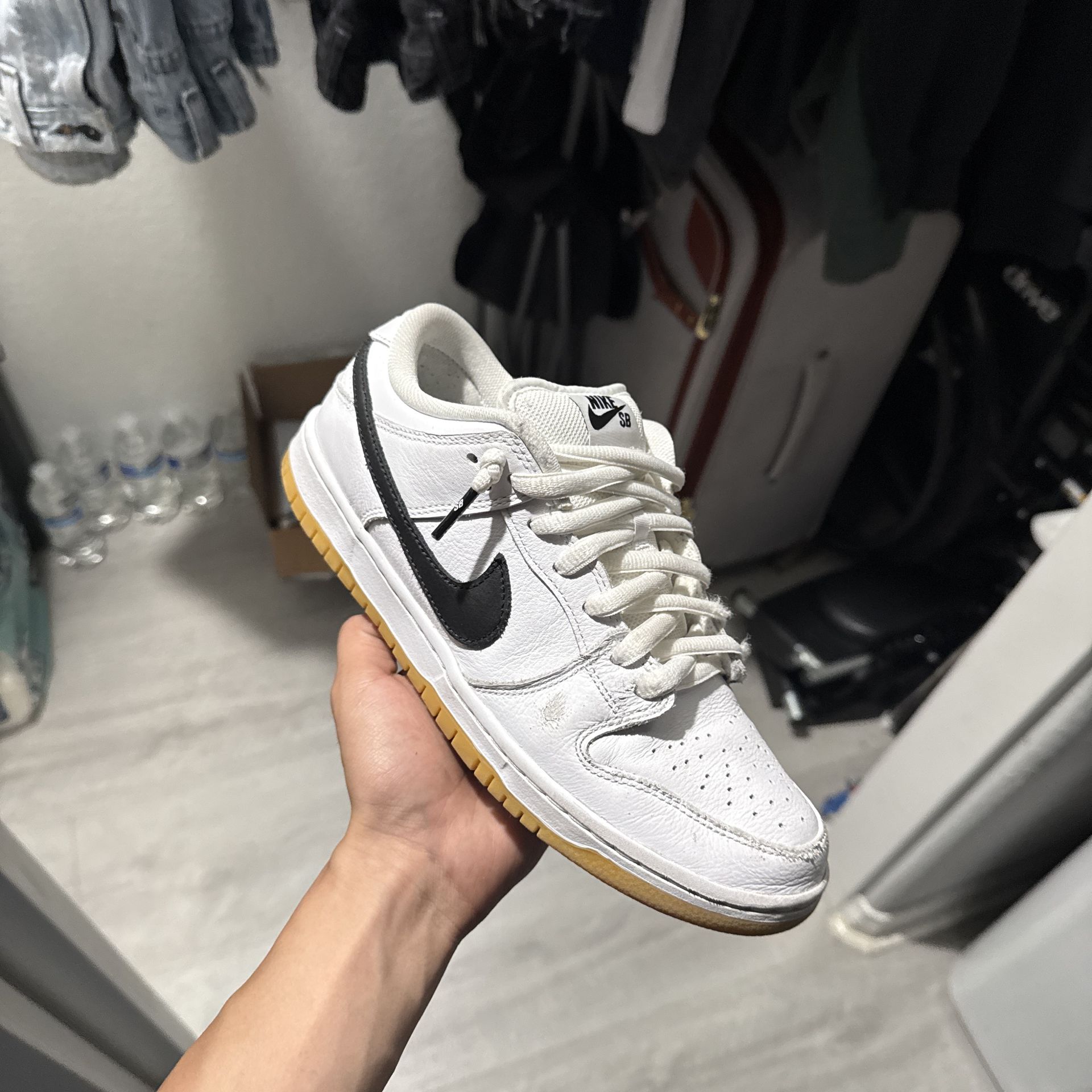nike sb white gum dunk lows, size 7.5 mens with original box and stockX tag. skated 4 times lmk