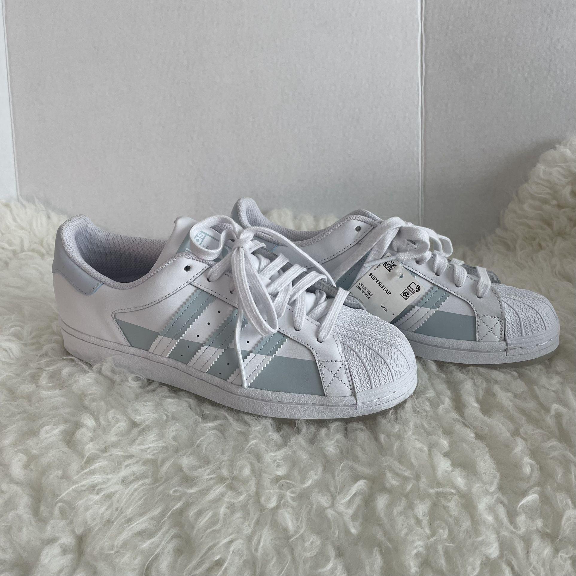 Adidas Originals Superstar Cloud White and Halo Blue Men’s 7.5 or Women’s 8.5 NWT no box. Unisex fit. Super trendy streetwear style. Can dress up or down, Great staple footwear piece. Coated leather upper. Condition: Brand new with tags attached. No flaws, Happy to bundle! 📦 All fair offers considered 💌 Thank you for shopping my small business 🌎