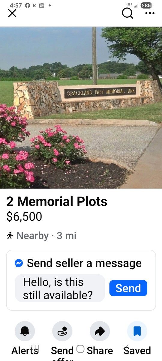 Garden D, Lot 389, spaces #1 and #2. GRACELAND EAST MEMORIAL GARDENS, located on Woodruff Rd., is convenient to both Greenville and the Simpsonville/Fountain Inn areas of SC. These plots are in the area directly to the right of the new Graceland office which is a very sought after location of the cemetery and are the only two plots available in this area of the garden. Looking to sell the plots together. Asking $6500 for both , OBO. Buyer pays transfer fees. I would love to sell these plots ASAP and am willing to negotiate in price. Message me if interested.