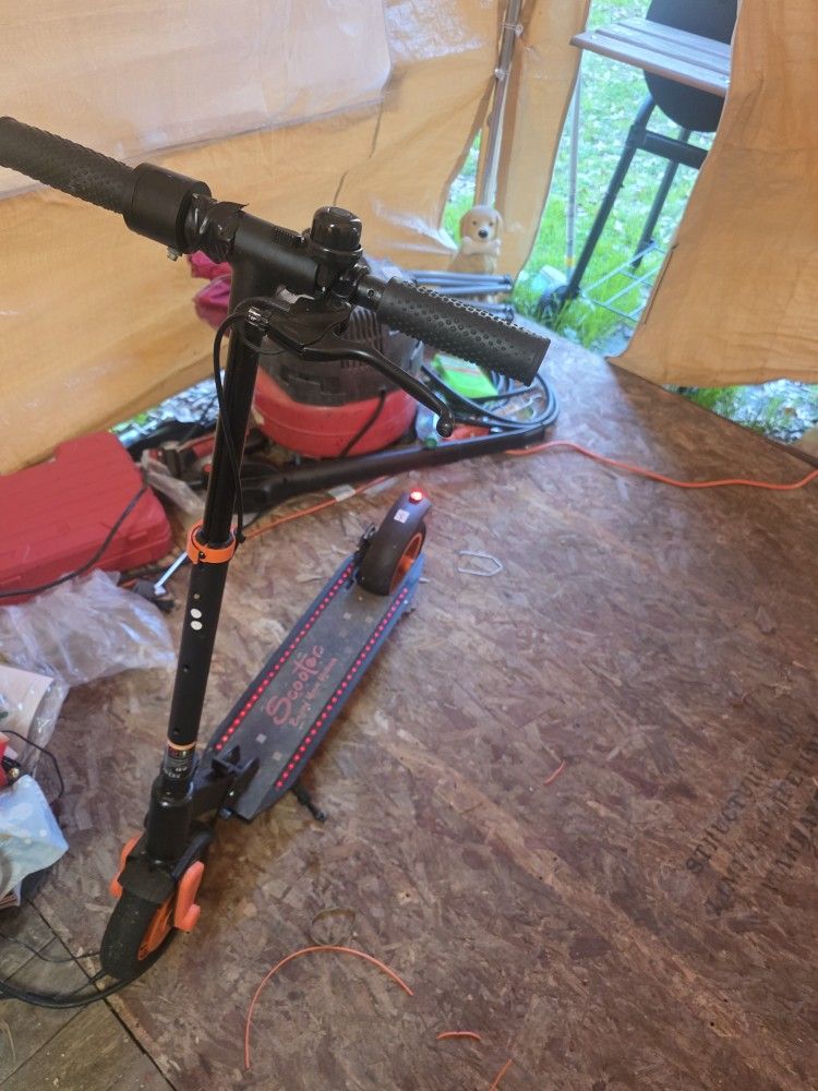 Rides good will fly 3 speeds with breaks its alittle dirty and I had to rebuild the throttle thats why there is tape on the handle other than that its a great scooter.