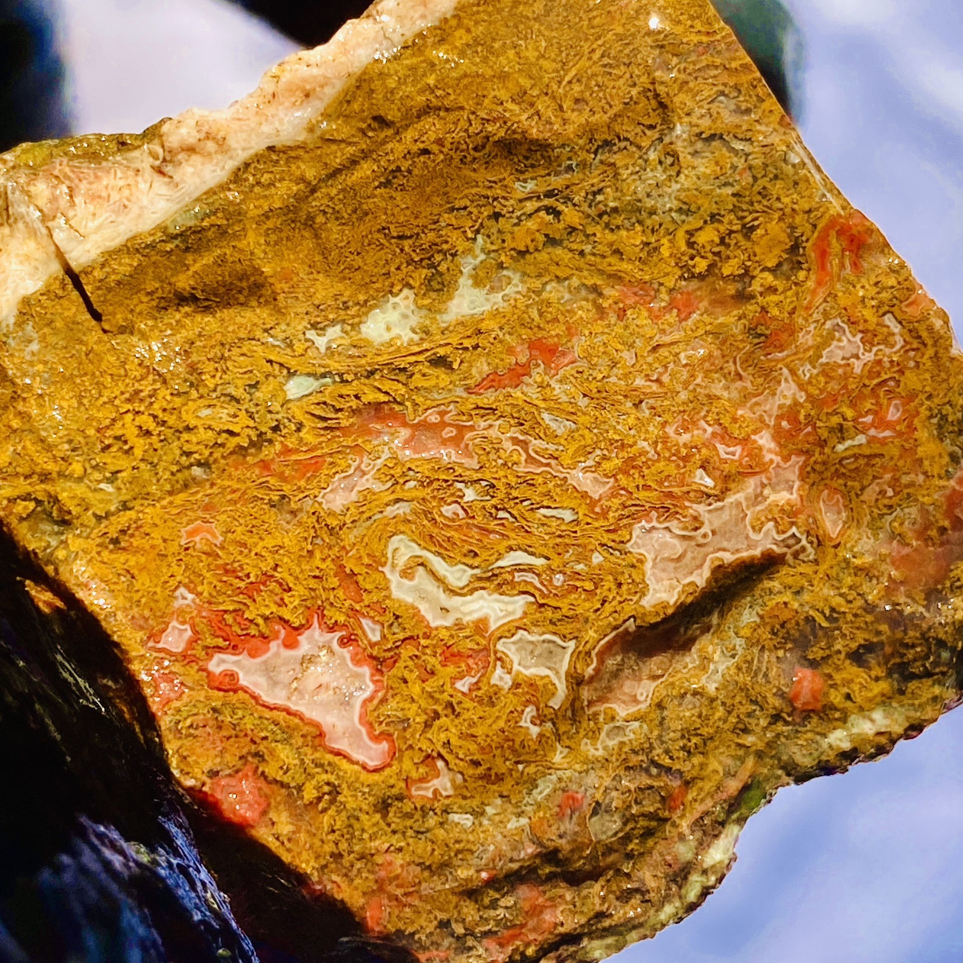 1lb Moroccan Apple Valley Agate Jasper Raw Rough Natural Red Yellow Seam Detail
