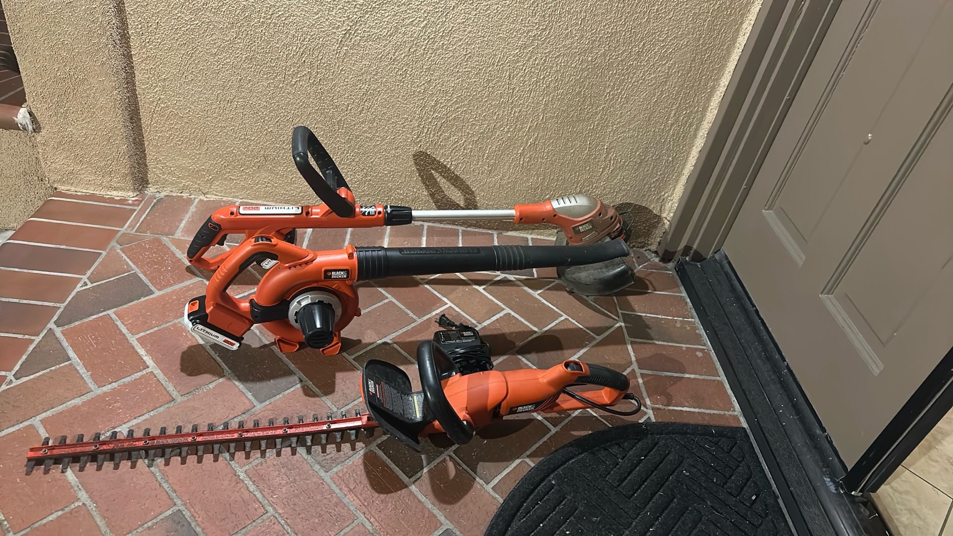 Battery operated weedeater and blower and has trimmer you plug-in comes with a charger Price low to sell 75