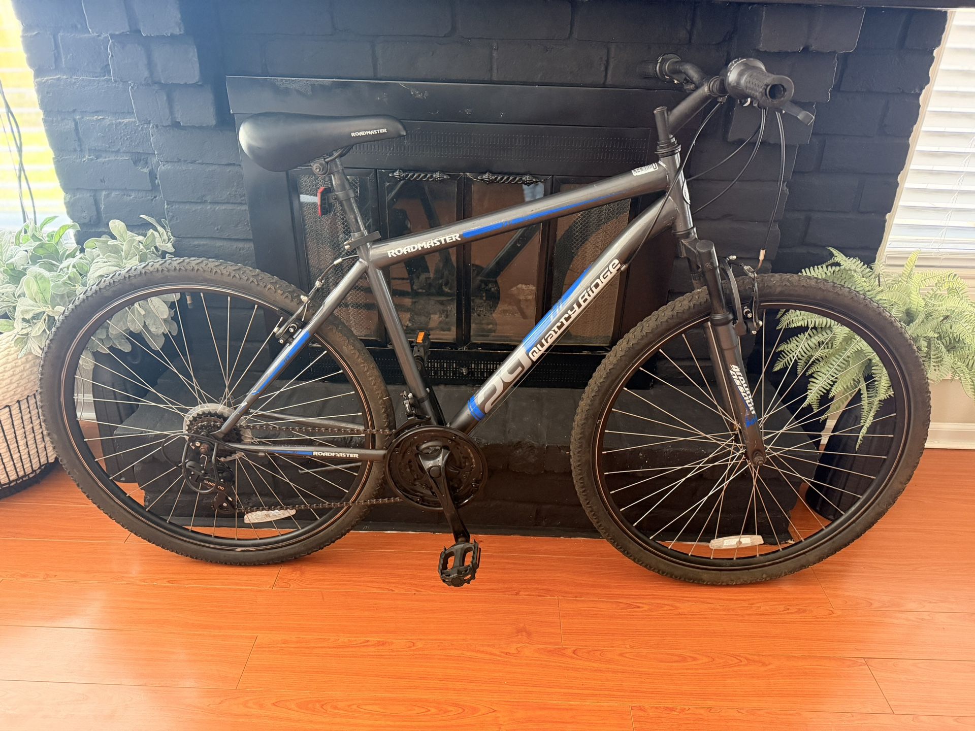 Solid 29er ready to ride! This Roadmaster Quarry Ridge has been tuned up and is riding great. Perfect for neighborhood rides, trails, or commuting. ✅ 29” wheels ✅ 19” frame (Large) ✅ Brand NEW chain ✅ NEW front & rear brake pads ✅ Tires hold air ✅ Gears shift smoothly ✅ Front suspension fork ✅ 3x6 drivetrain Everything is working like it should. Nice gray/blue colorway and overall good condition. Great affordable 29er that’s ready to go 🚲 Cash only. First come, first served.