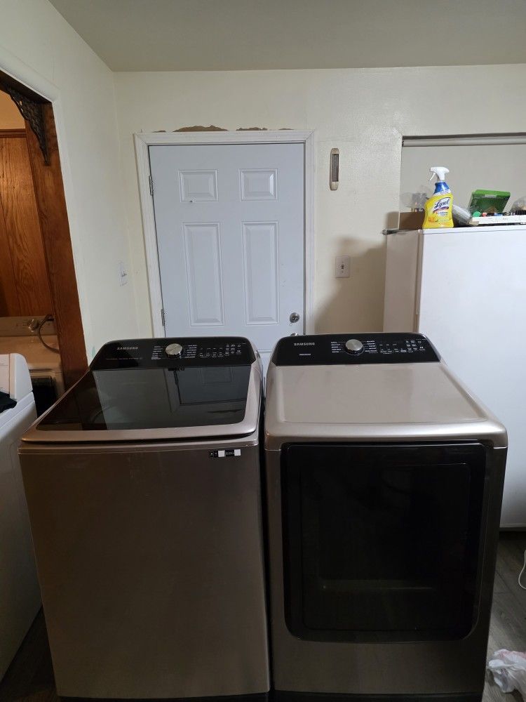 CHAMPAGNE SAMSUNG WASHER AND DRYER SET BOTH ELECTRIC XL CAPACITY 5.4 CU GOOD CONDITION HEAVY DUTY DELIVERY AVAILABLE FOR EXTRA FEE WE DO REPAIRS