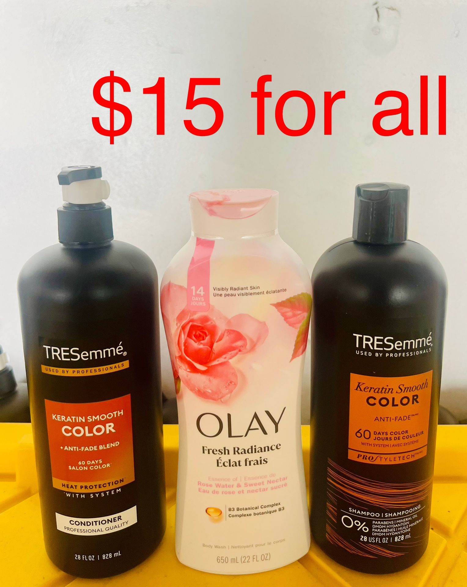 Pick up only‼️‼️ East side San Jose 💫1 shampoo Tresemmé 28 oz 💫1 conditioner Tresemme 28 oz 💫1 body wash olay 22 oz