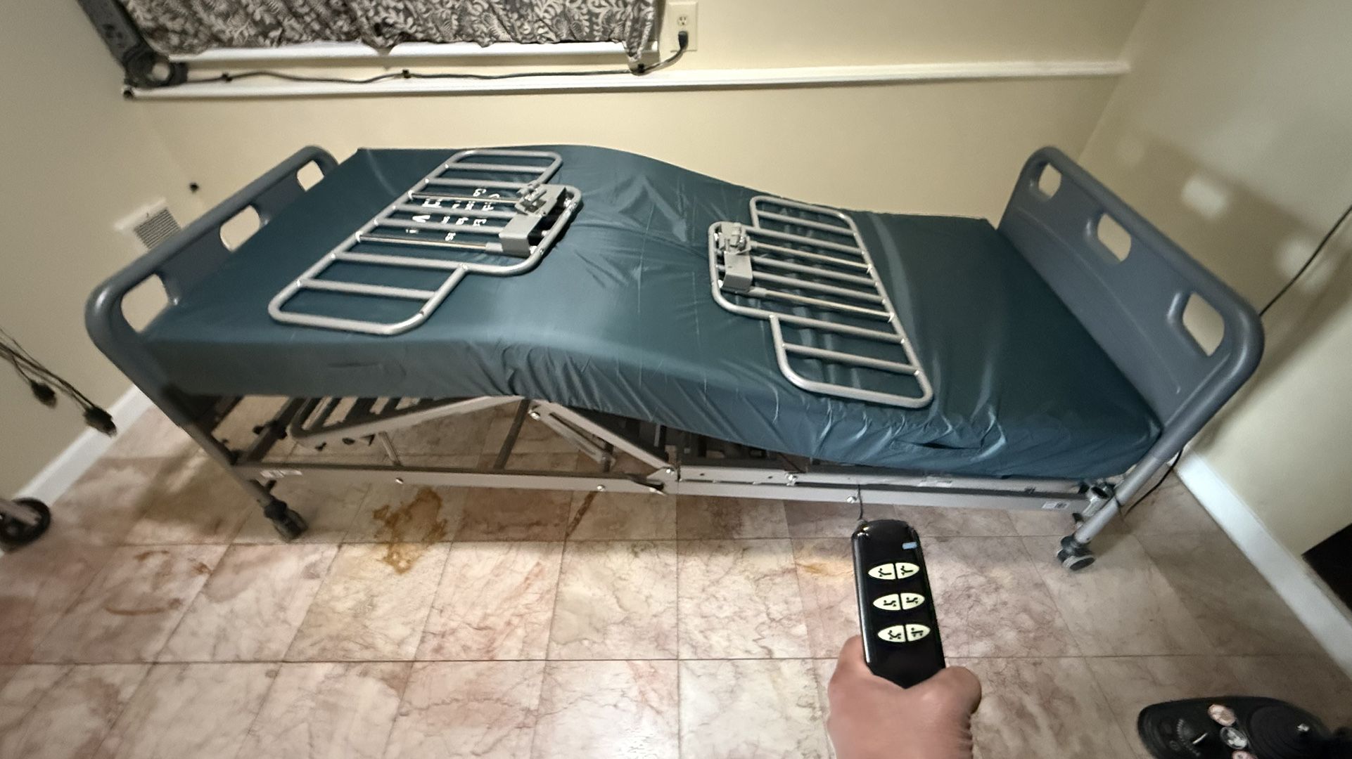 Twin size semi electric hospital bed (head and feet go up and down). Includes side rails and mattress. Delivery available and negotiable.