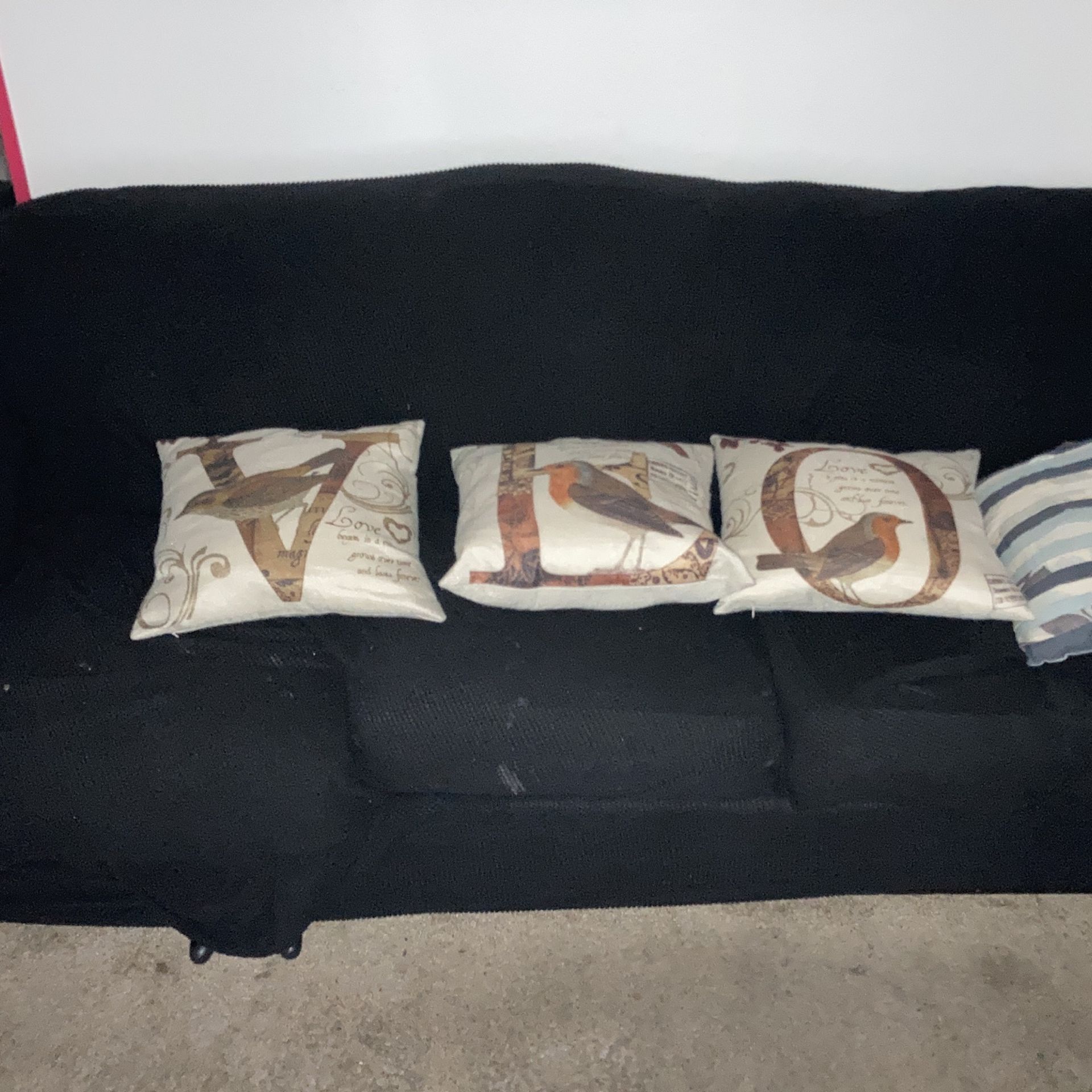 Cream colored 3 seater couch few small stains can be washed covered with a black couch cover asking 150 or best offer also have dark brown soft recliner perfect for office or bedroom/ living room asking 100 or best offer will sell together or seperate