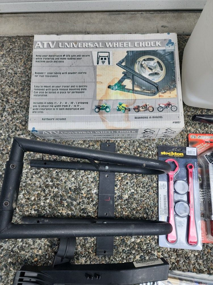 Most of this stuff is brand new, only used 2 or 3 times the wheel chock, one of the jug, and the tire change tools the rest is new,OBO.