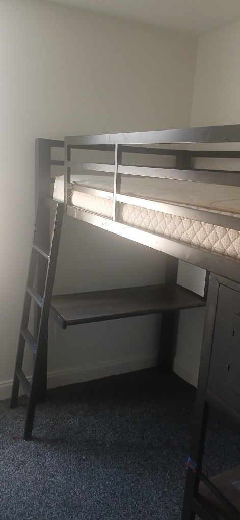 I have a loft bed for sale. Is currently taken apart with all the screws so its ready to go. This includes the mattress, there are shelves and a table for a desk underneath. Everything is on good condition. Pickup only, nothing heavy but there are 3 big pieces that is a little awkward. Need gone ASAP! Pickup in South Miami This does include the mattress, my boy is getting big so I've replaced this, and need it gone ASAP.
