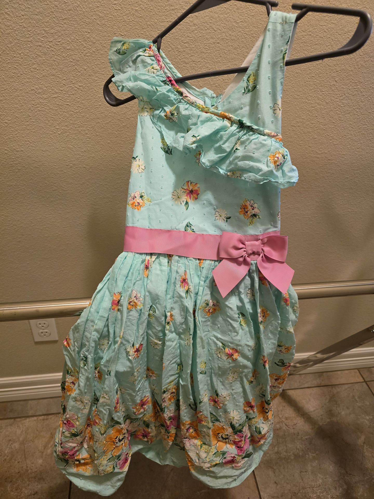 Bonnie Jean excellent condition worn once. Girls Size 12. Has white under slip petty coat to poof out the bottom. It is wrinkled from being in closet up against other dresses. Perfect for Spring/Easter.