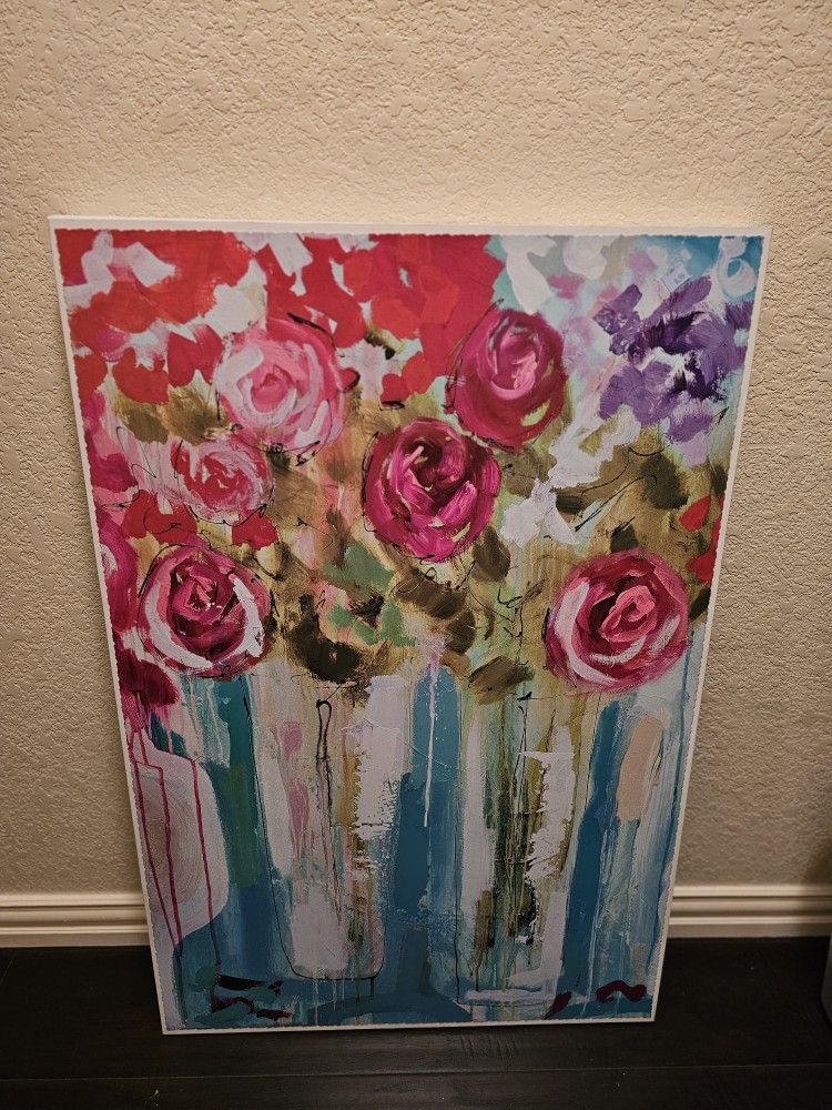 Beautiful floral artwork on a very large pallet; size is 36"×24". In perfect condition.