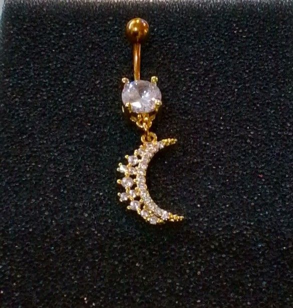 New. Stainless Steel. Half Moon Belly Ring With Rhinestones. All Rhinestones Are Intact, Non Missing. Measurements Are In 2nd Pic.