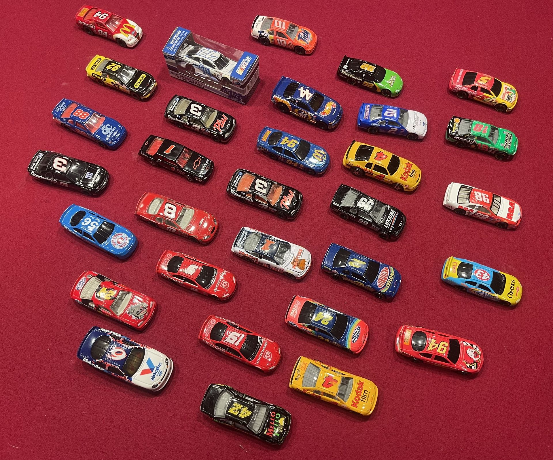 31 NASCAR cars most hot wheels with case mystery cars on bottom side of case