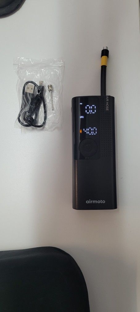 Airmoto Tire Inflator Portable Air Compressor with Power Kit for Charging on The Road - Cordless Air Pump for Car Tires, Motorcycle, Bicycle, Balls