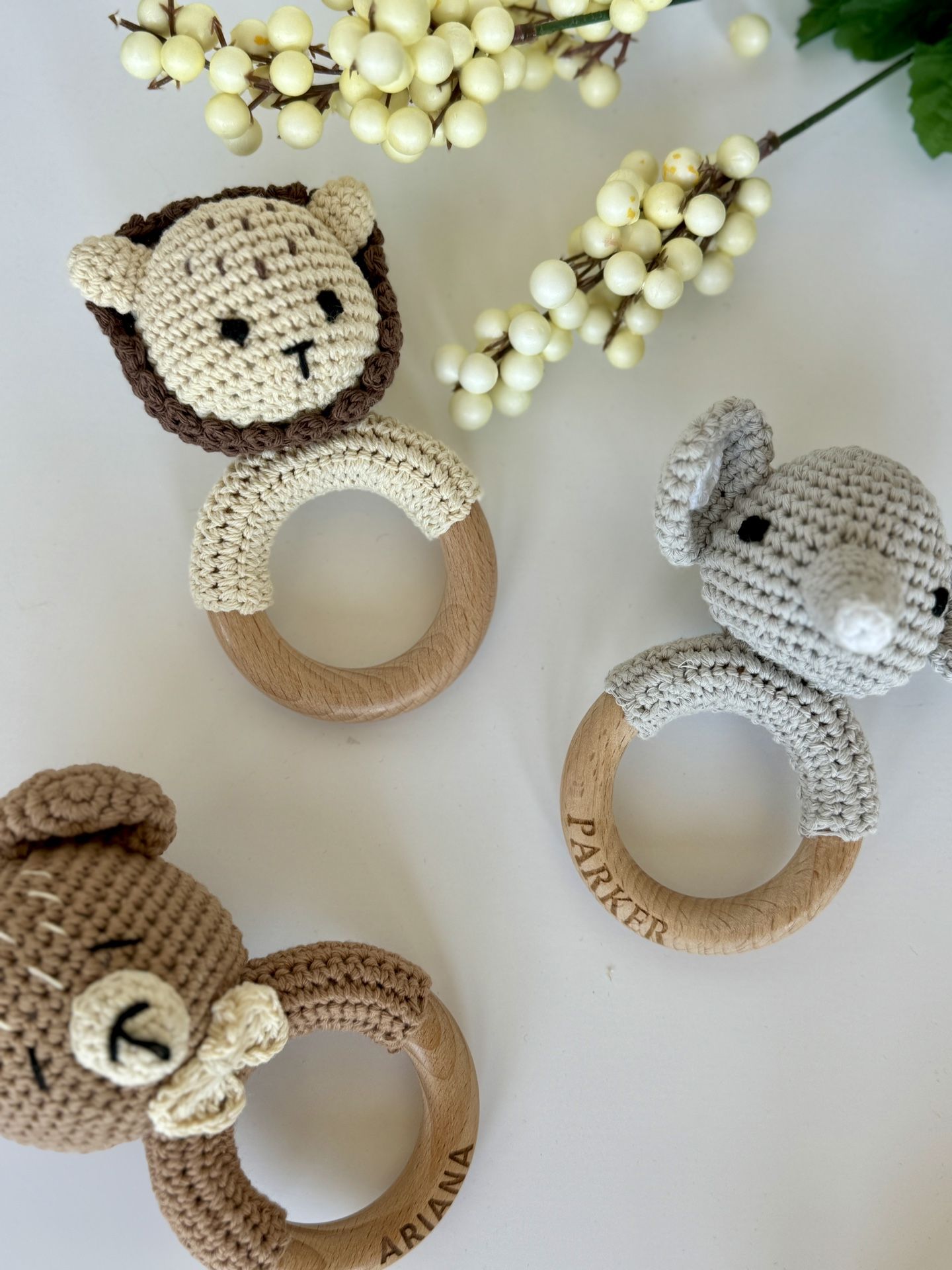 Personalized Engraved Crochet Wooden Rattle l Baby shower l Baby Gift l Wooden Toys