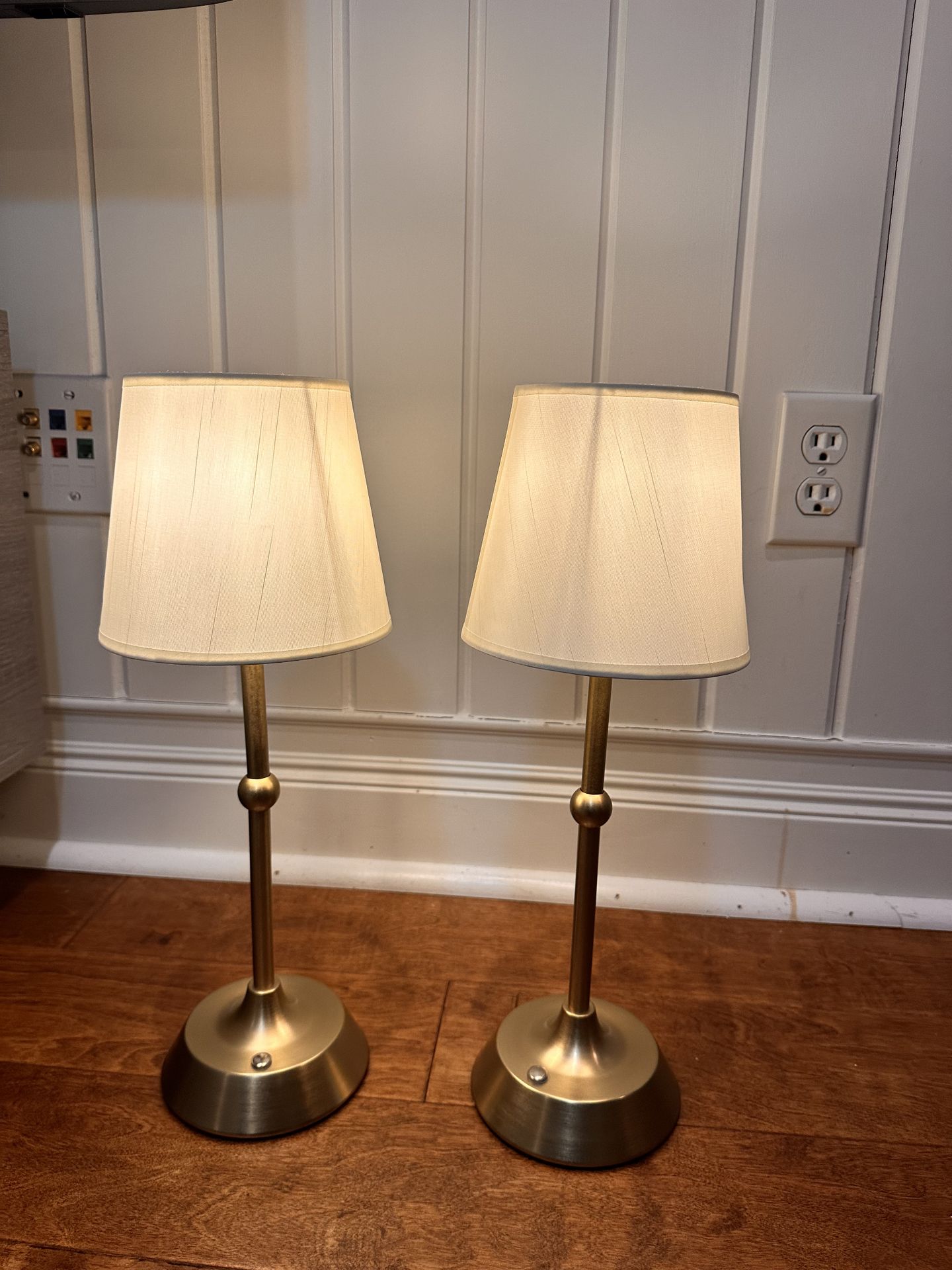 2 Pack Cordless Table Lamps, 3 Colors Stepless Dimming Fabric Desk Lamp, 6000mAh Rechargeable Battery LED Desk Lamp, Touch Night Light for Bedroom, Dining, Desk, Cafe. One of the lamp’s USB ports is loose, but the USB cable can still be plugged in easily, as shown in the photo.