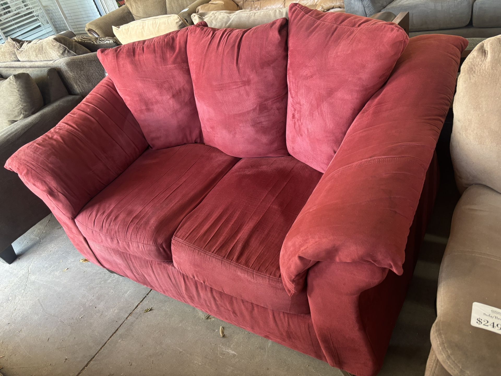 Red Microfiber Loveseat- FREE DELIVERY