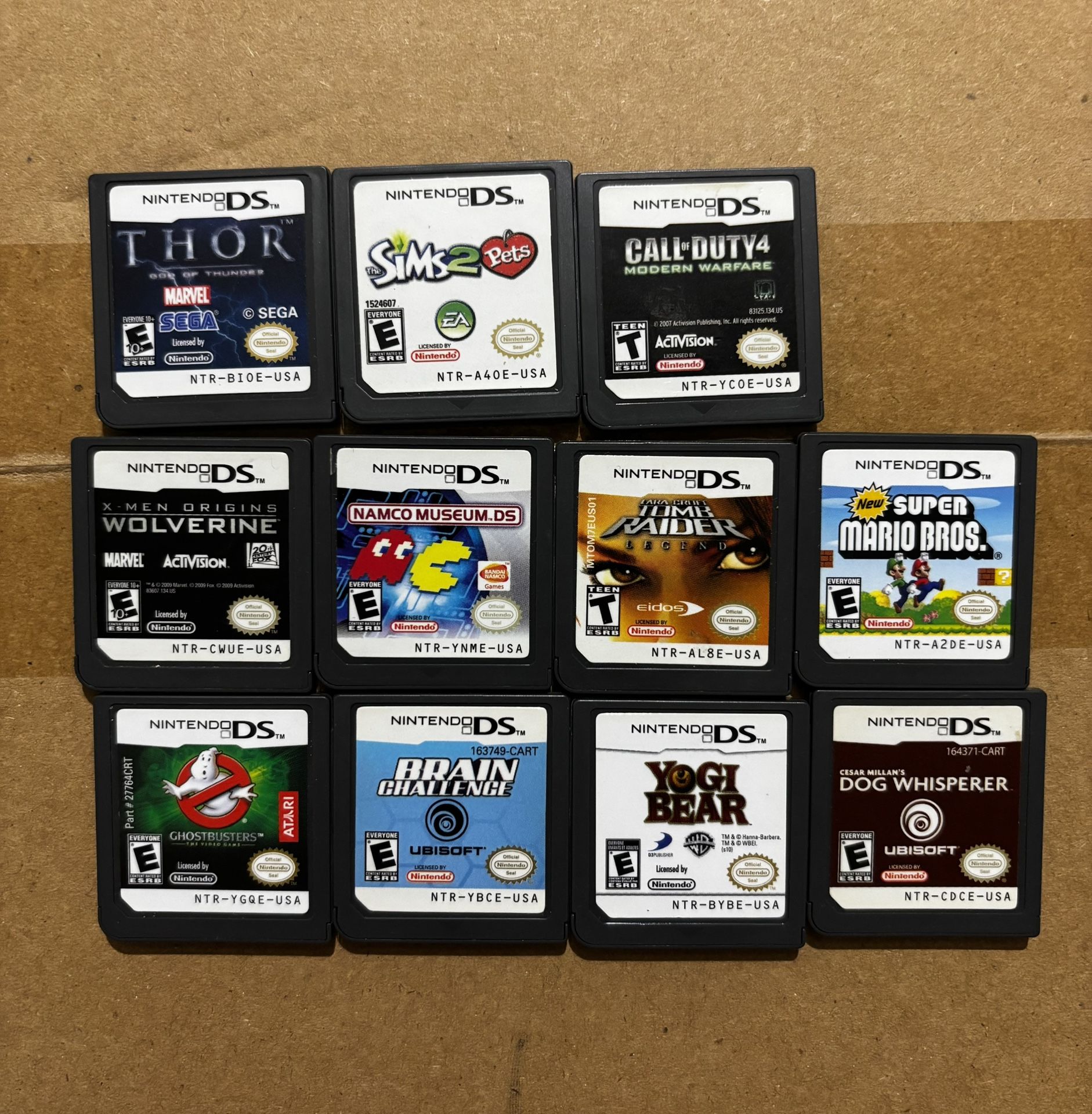 NiNtEnDo DS Games Nintendo DS Games All Games Work!!! 💯 Call of Duty 4 - $20 New Super Mario Bros - $30 Yogi Bear - $15 Dog Whisperer - $10 Sims 2 - $15 Thor God of Thunder - $10 Ghostbusters The Video Game - $10 Brain Challenge - $5 Namco Museum DS - $10 Xmen Origins Wolverine - $10 Tomb Raider Legend - $15 Asking $140 firm for all the Games OR you may buy them separately
