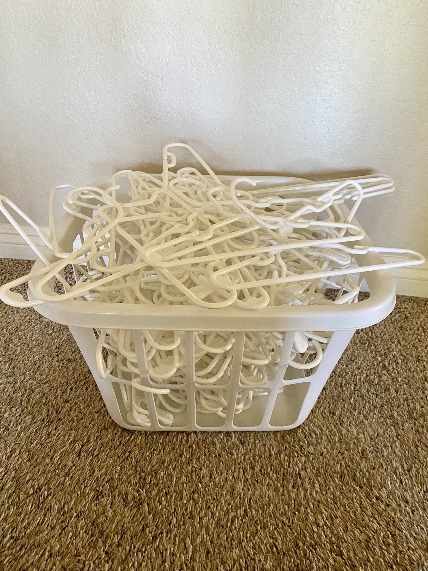 Gigantic Lot Of Baby / Kids Hangers Approximately 100 hangers These actually cost me quite a bit and are in great condition. Laundry basket is NOT included $35