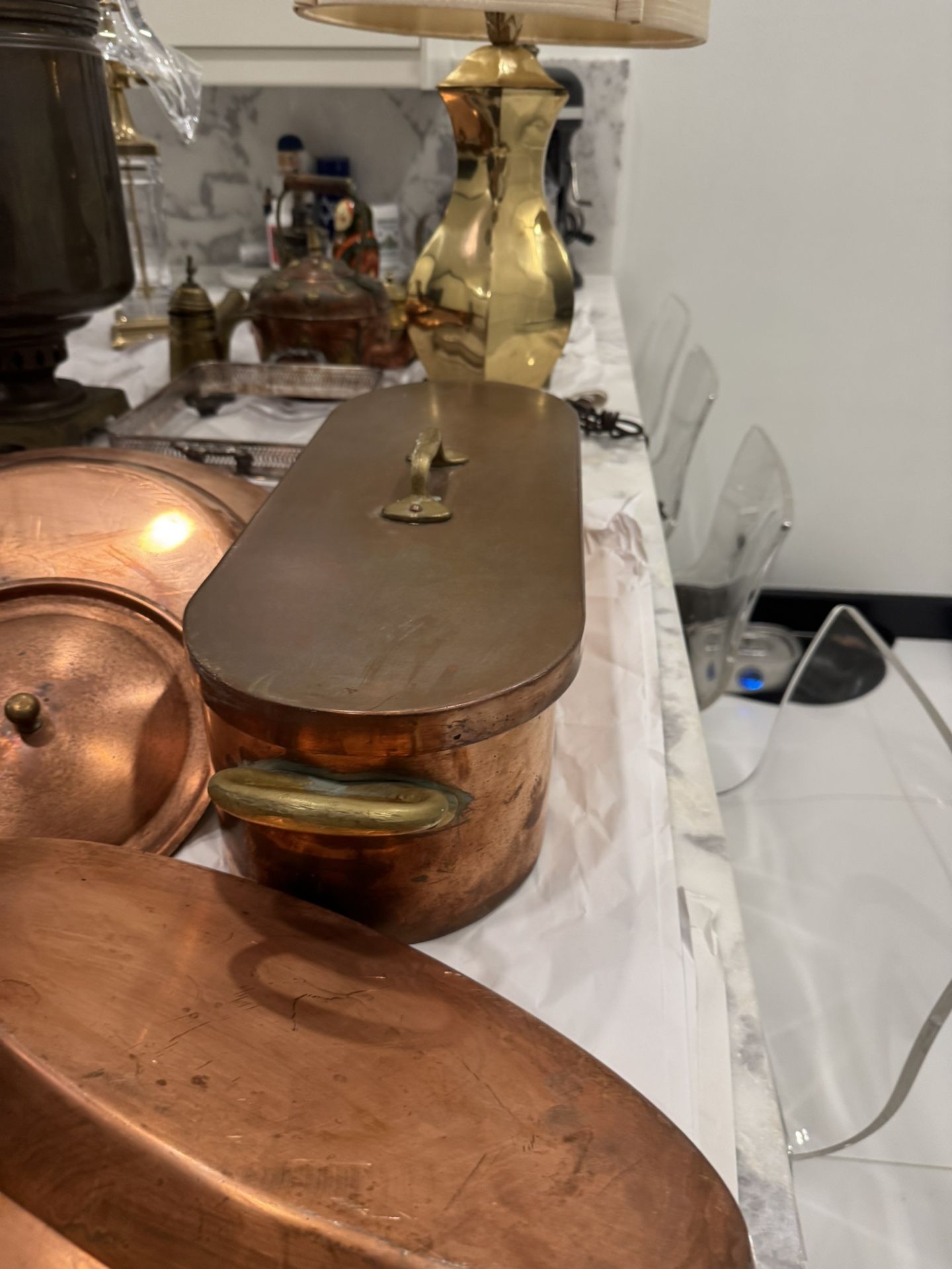 Antique French Copper Fish Poacher with Lid and Insert