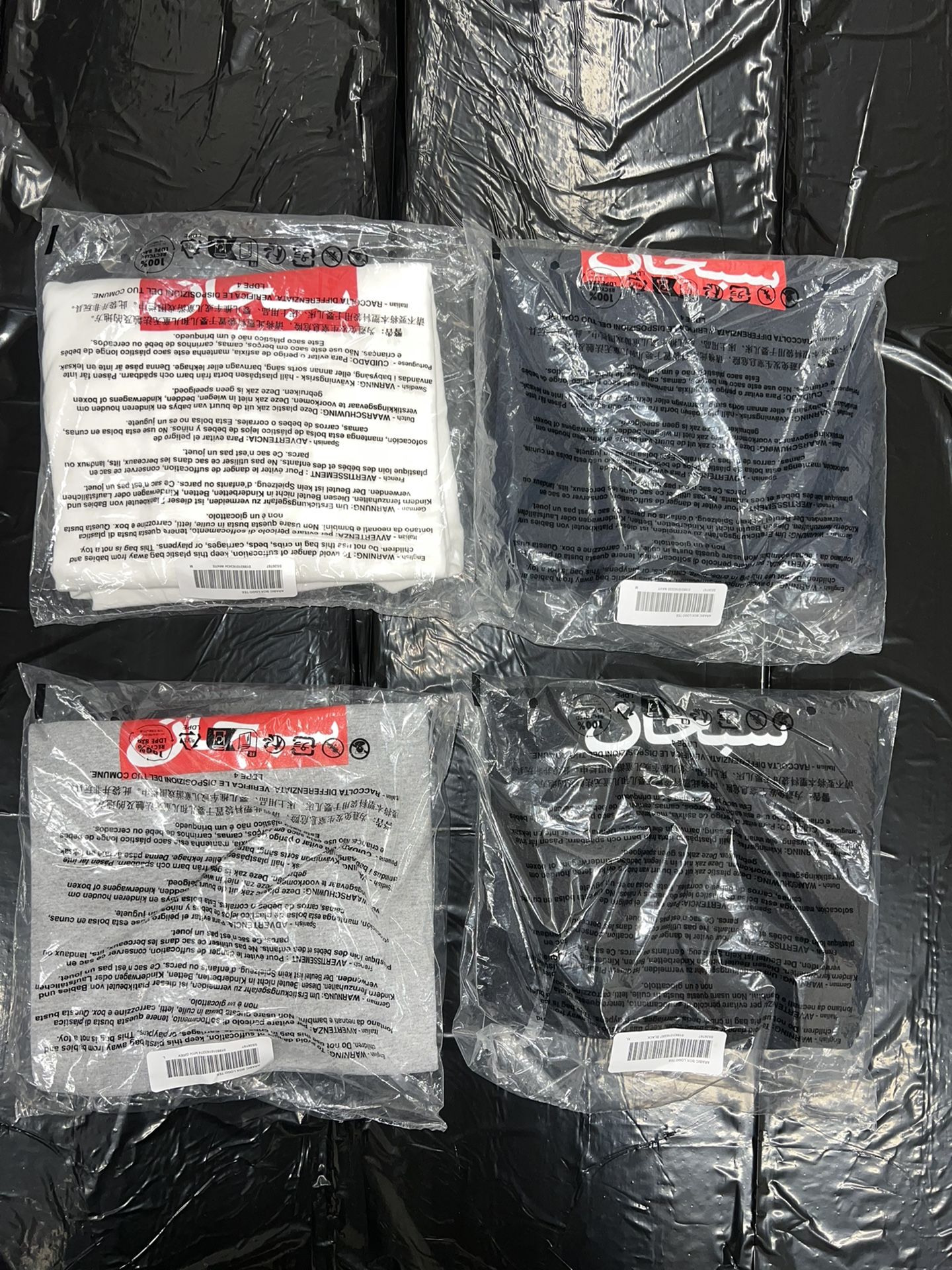 Supreme Arabic Box Logo Tee M L XL ds shirt hoodie hat jacket camp cap beanie bag backpack sb lo hi white black navy grey