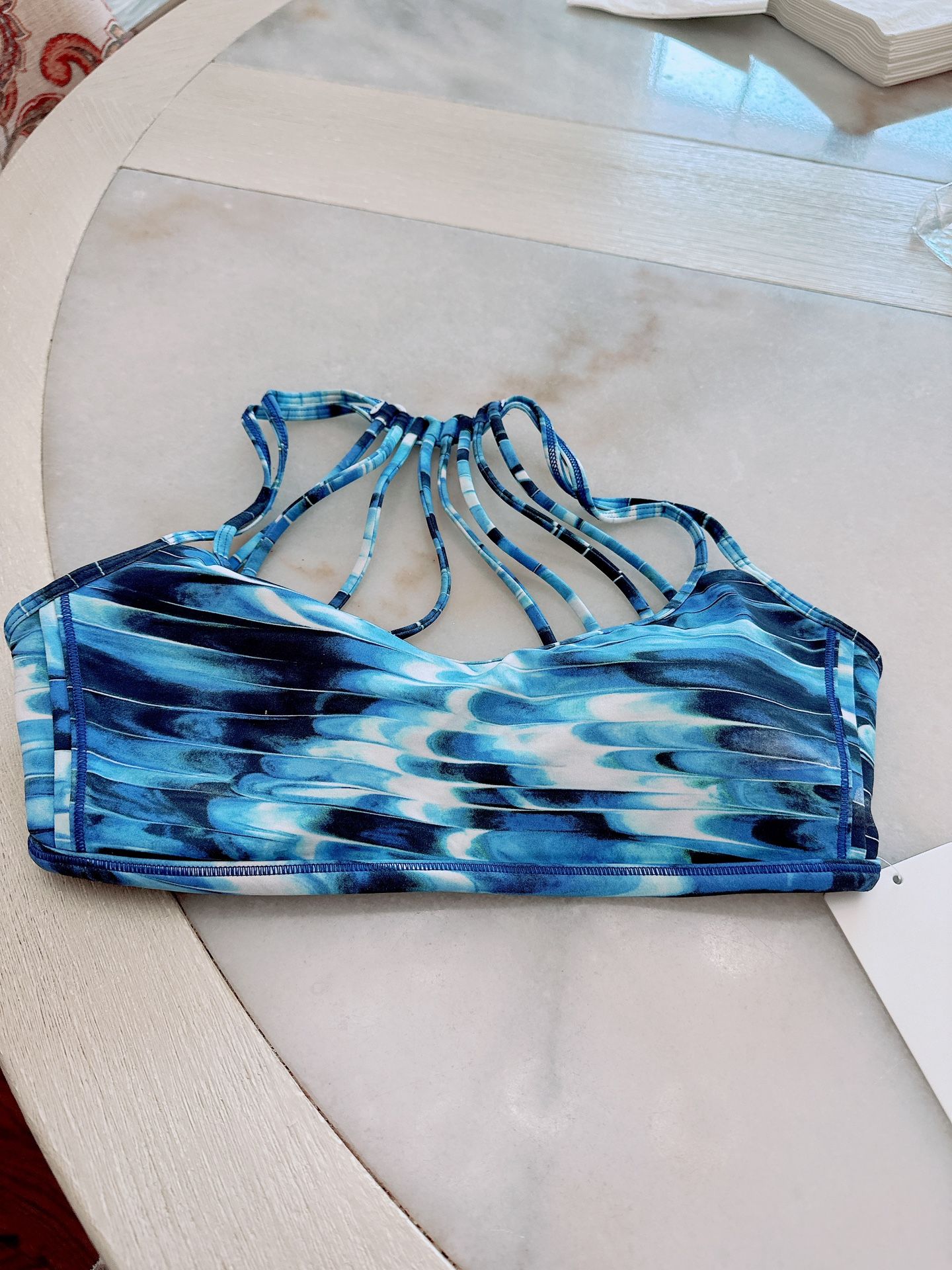 Brand new with tag Never worn Size : 8 The back style is super pretty Show off this extra-strappy bra under your favourite open-back tank as you flow through practice. Luxtreme® Sweat-wicking Luxtreme® fabric is four-way stretch, cool to the touch and fits like a second skin—this technical fabric offers support and smooth, low-friction performance sweat-wicking four-way stretch fits like a second skin cool smooth handfeel low-friction performance 1236/920