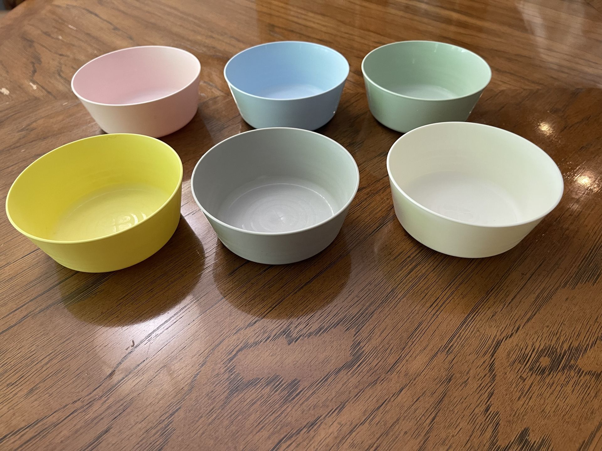 Set of 6 Stackable Small Bowls from Ikea - Like New Dimensions: Just over 4.5” across x 2” tall Pastel colors Material: Plastic Price: $5.00 for the lot of 6