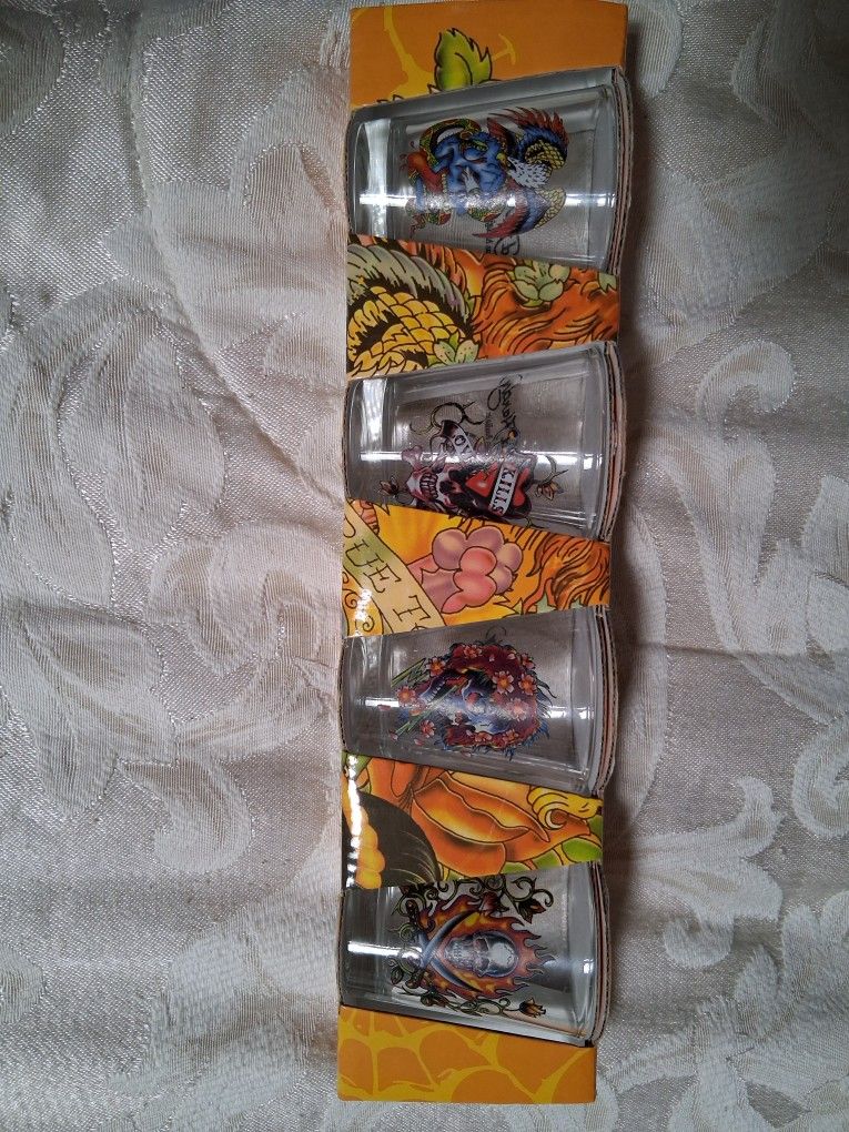Ed Hardy New in box 1.5 Oz set of 4 shot glasses. MPU by Chicos Tacos on Dyer. CASH firm price.