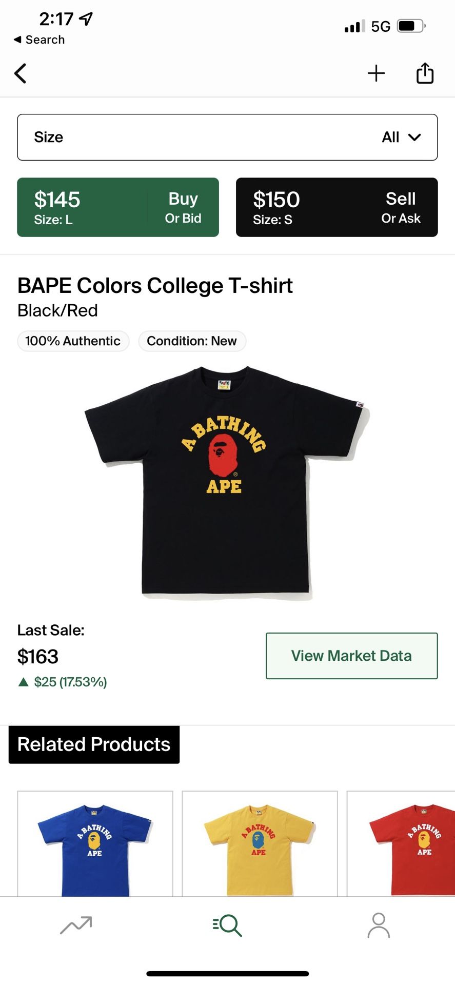 BLACK RED AND YELLOW BAPE COLLEGE T-SHIRT