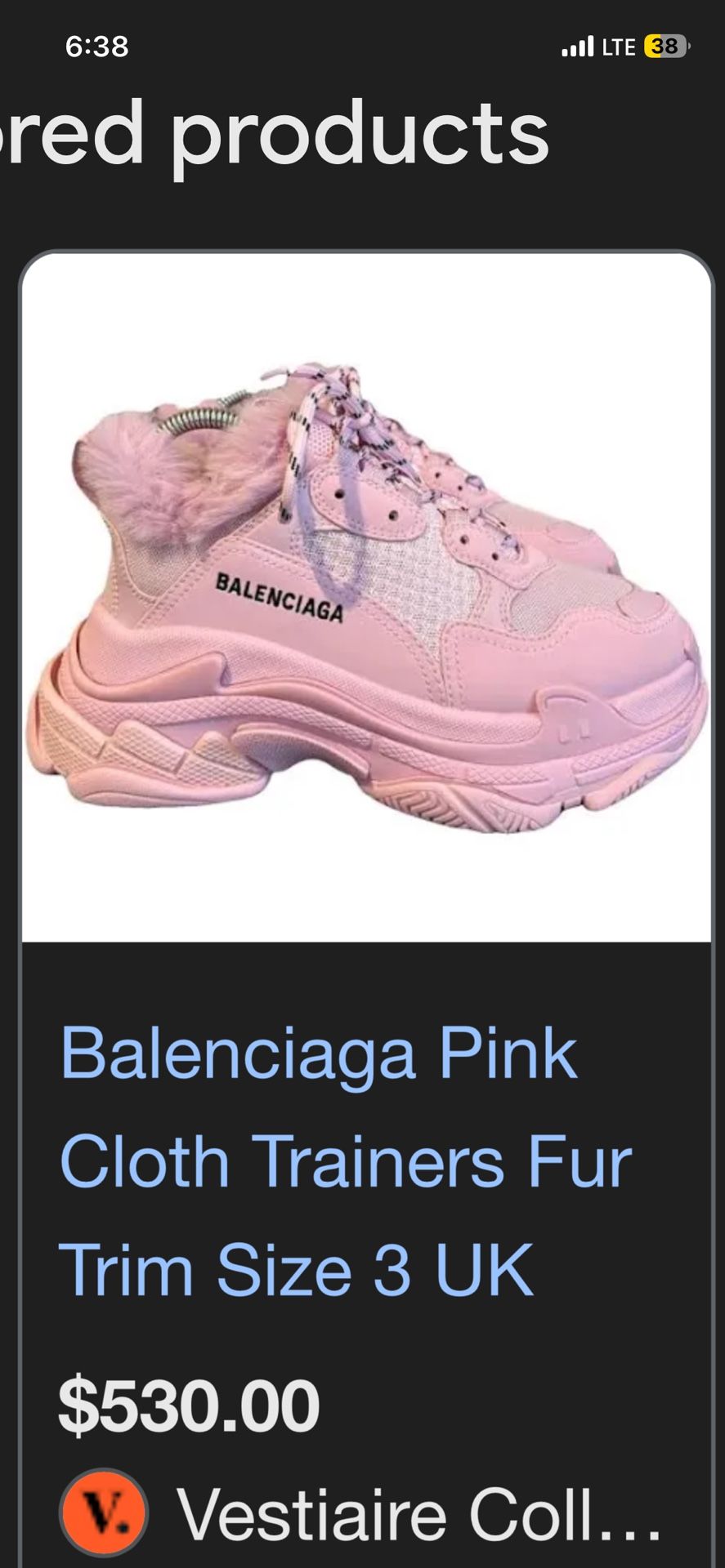 Balenciaga pink cloth trainers fur trim size women’s 8