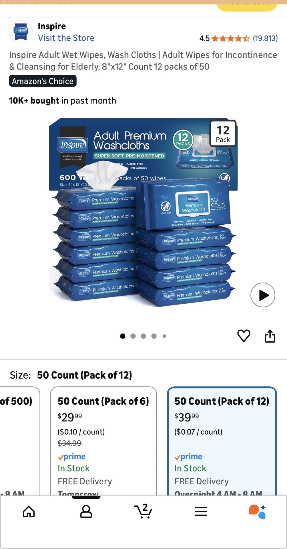 Inspire Adult Wet Wipes, Wash Cloths | Adult Wipes for Incontinence & Cleansing for Elderly, 8"x12" Count 12 packs of 50 I have 3 unopened boxes and a few loose packages. Bought for my father and he no longer needed. Cash only. Pick up only. $32.00 per box $3 per pack for loose packages