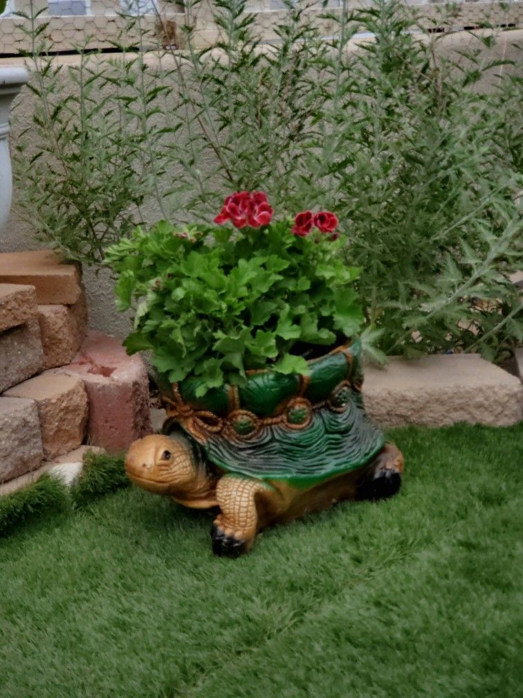 Turtle pot available in 2 different colors of green made out of plaster soil dirt water not recommended unless steal with a 100% waterproof sealer plants are not included