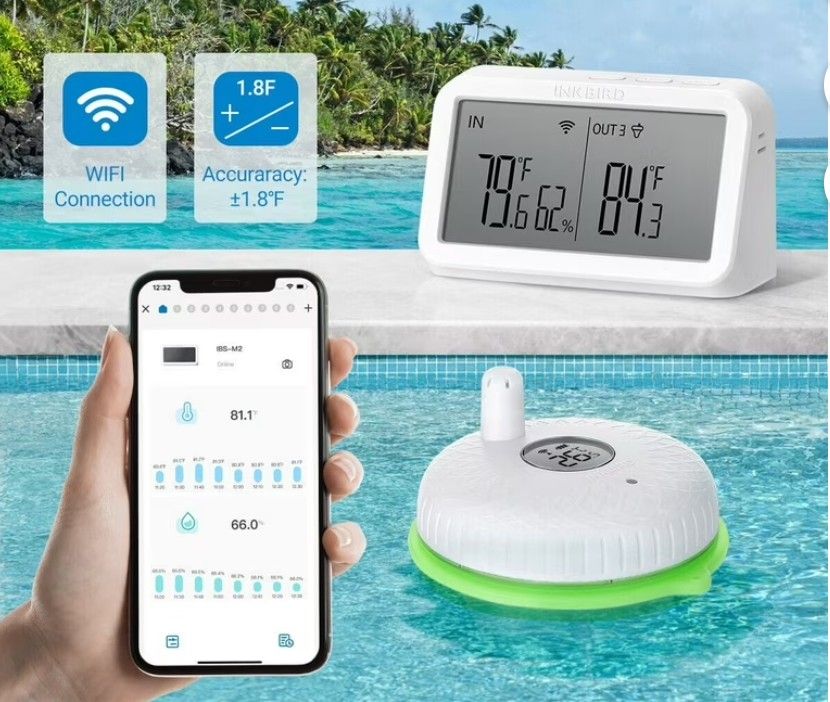 Inkbird Digital Floating Pool Thermometer with IBS-M2 WiFi Gateway, IPX7 Waterproof, Idea for Swimming, Hot tubs,Temperature testing