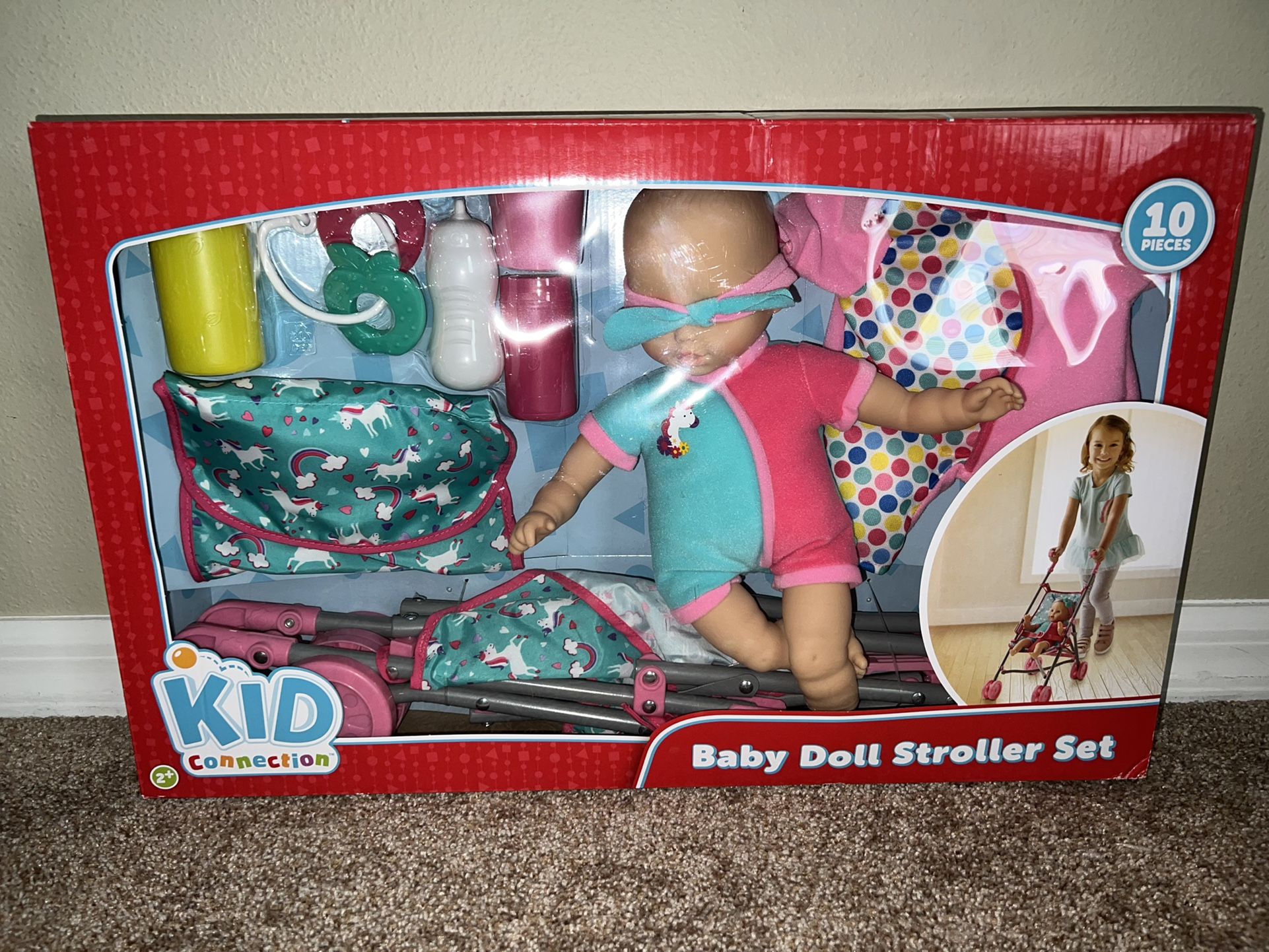 Kid connection baby doll with stroller set 10 pieces