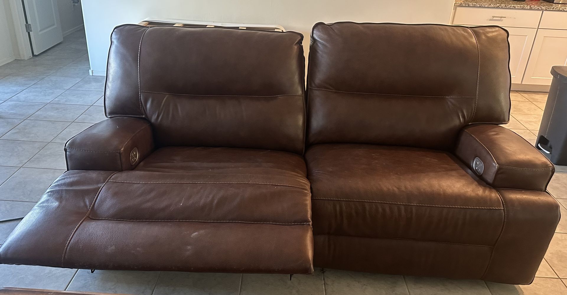 Leather recliner over sized loveseat. USB outlet on each side $375 located in Marana