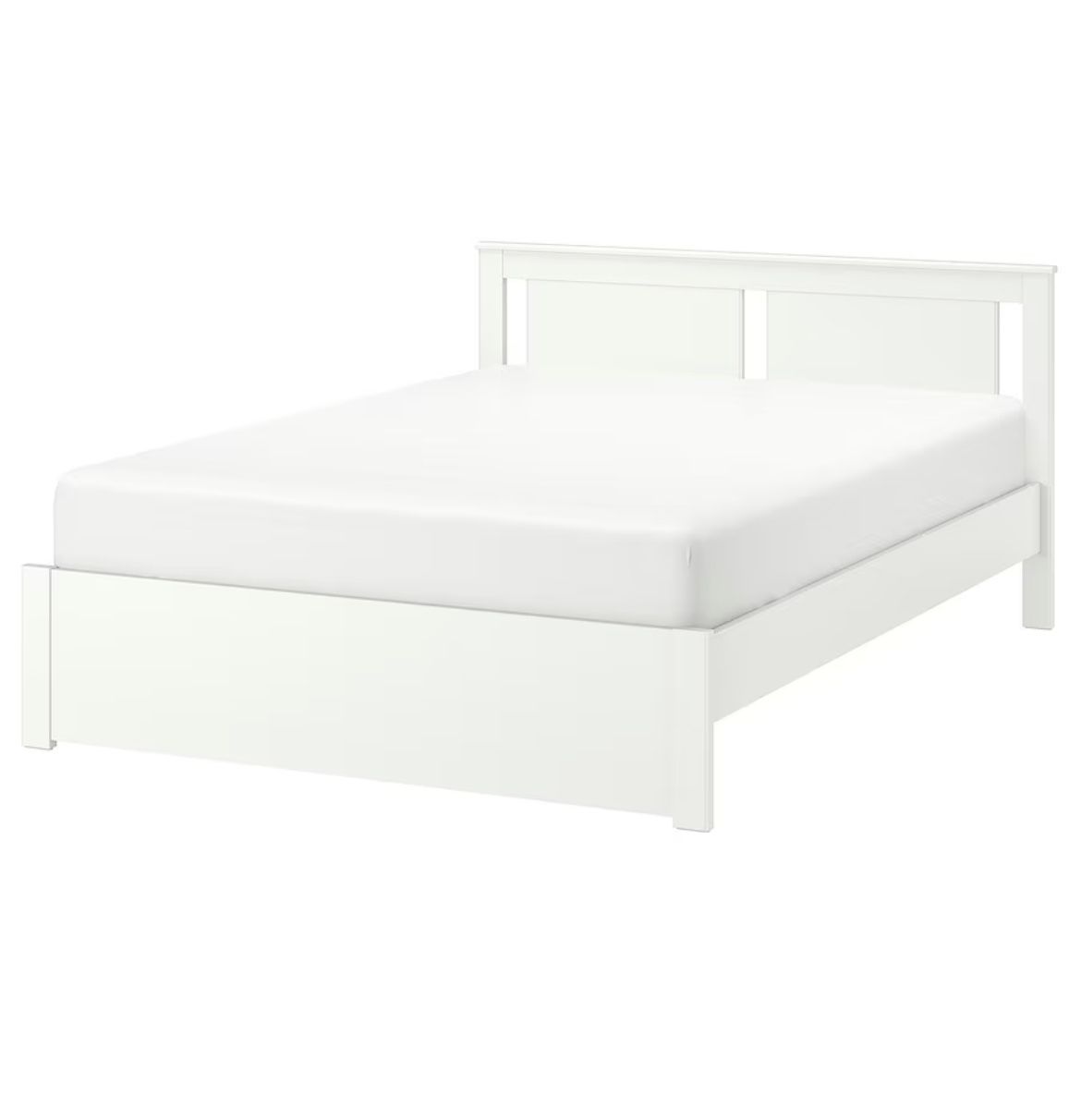 White IKEA double bed frame with mattress – clean and in great condition. Modern design with sturdy frame and headboard. Includes comfortable mattress (used gently, always with a cover). Fits full or queen size. Dimensions: 208 cm x 165 cm (81.8” x 65”) Price: $300 for the full set Pickup in East Brunswick, NJ.
